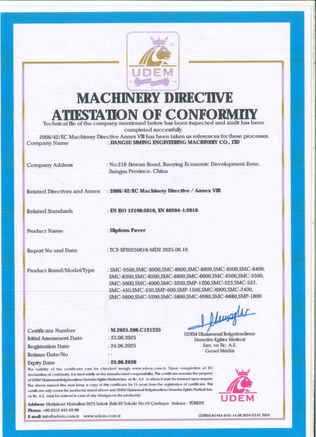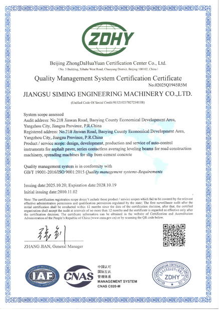 China Jiangsu Siming Engineering Machinery Co., Ltd. certifications
